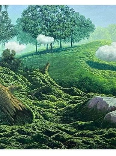 In his early works, Marlon, like a keen apprentice, observes the work of Tomas Sanchez, who is, in fact, a reference that guides his initial interest. These –his works– seem to be a tribute to the master, the noble gesture of learning by admiring. It is the first impulse, the first steps to enter a hidden hill that he will particularize and make his own.